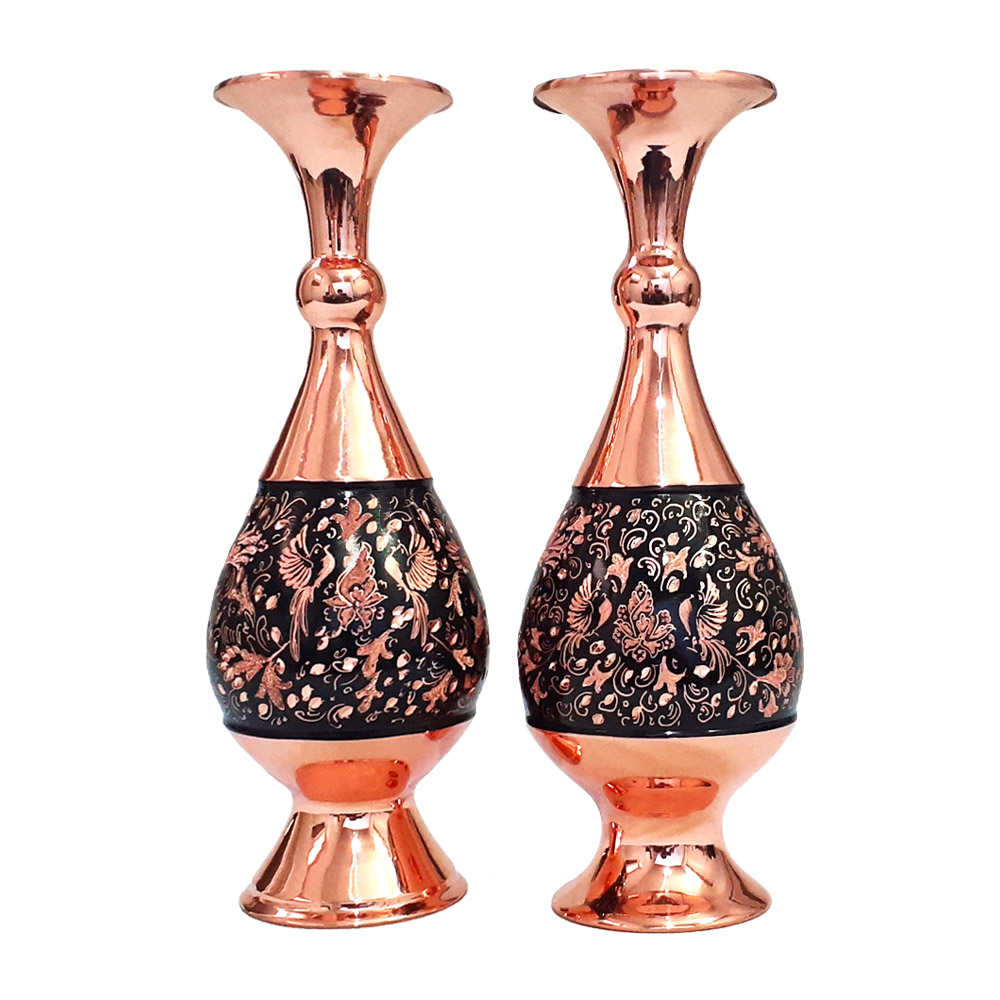 گلدان مسی مدل الماس تراش طرح گل و مرغ کد 25-3 مجموعه 2 عددی